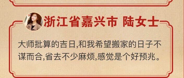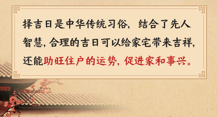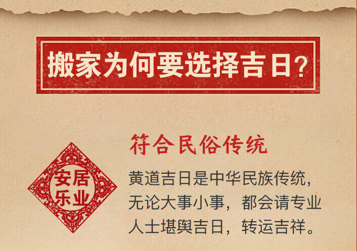 俗话说,“吉地也要良辰催”。自古以来,选择个好日子就是搬家迁居前必做的准备。在适合自己的吉日搬迁,有益助旺家运昌盛不衰。